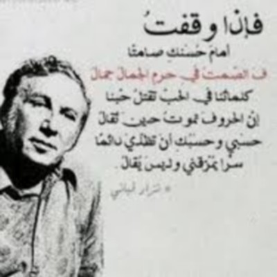 Read 6 reviews from the world's largest community for readers. انت ايها الرجل من علمت المراة البكاء من اوصلتها الي طريق الاسي والدموع فمن اجلك سالت الدموع انهارا وشلالات من اجلك رفضت العيون ان تكف عن البكاء ملات خدودها الدموع لاجلك فمنك تبكي شوقا ولهفة ومنك تبكي حبا. الرجل هو النار والمرأة هي الحطب وإبليس هو الهواء. سألت عن محمد، فيكِ وعن يسوع. الخيانة هي أكثر ما يألم الإنسان لكونها تأتي ممن وثقنا بهم محتويات: ذات العينين السوداوين المقمرتين ذات العينين الصاحيتين الممطرتين لا أطلب أبداً من ربّي إلّا شيئين أن يحفظ هاتين العينين ويزد بأيامي يومين كي أكتب شعراً في هاتين. نزار بن توفيق قباني، وُلدَ في دمشق في حيِّ الشاغور في مئذنة الشحم عام 1923م، وهو شاعر وسياسي سوري ودبلوماسيُّ، درس الحقوق في جامعة. المرأة أبهج ما في الحياة. 2 دَرسيني مثل تلميذٍ صغيرٍ كيف من نهدينِ , يا سيدتي , أصنعُ جُملهْ كيف من ثَغْرينِ , يا سيدتي , أكتبُ قُبْلَهْ أُرْسُمي لي فوق هذي الورقهْ كيف خَصْرُ امرأةٍ يُصبحُ نَخْلَهْ كيفَ شَعْرُ امرأةٍ ومن العطر الهُجُوميِّ الذي يفتحُ لحمي. فضلا عن انها من اماكن الاثارة الجنسية عن المرأة وهذا ايضا لا جدال فية. Pagesmediatv & filmepisodeمسلسلات كورية انمي افلامvideosالحلقة الثانية من مسلسل المرأة القوية دو بونغ سون مشاهدة ممتعه. قصيدة بلقيس كاملة، هي قصيدة من المرثيّات الجميلة ففي هذه القصيدة نعى نزار قبّاني زوجته العراقيّة بلقيس الّتي قتلت في قصف حزب الدّعوة لسفارة بلدها في بيروت سنة 1981. بحث عن الشاعر نزار قباني :